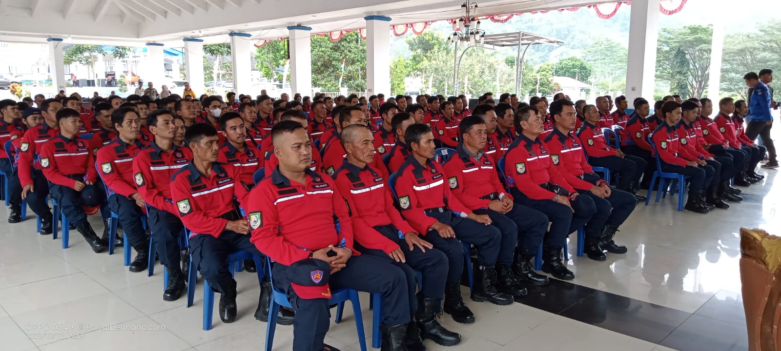 Lebong. PortalBermano.com – Bupati Lebong, Kopli Ansori didampingi Staf Ahli Bidang Pemerintahan, Hukum dan Politik Pemprov Bengkulu, Murlin Hanizar, mengukuhkan Sebanyak 280 orang Relawan Pemadam Kebakaran (Redkar) Kabupaten Lebong, Jum’at (22/12) di Pendopo Rumah Dinas (Rumdin) Bupati Lebong.