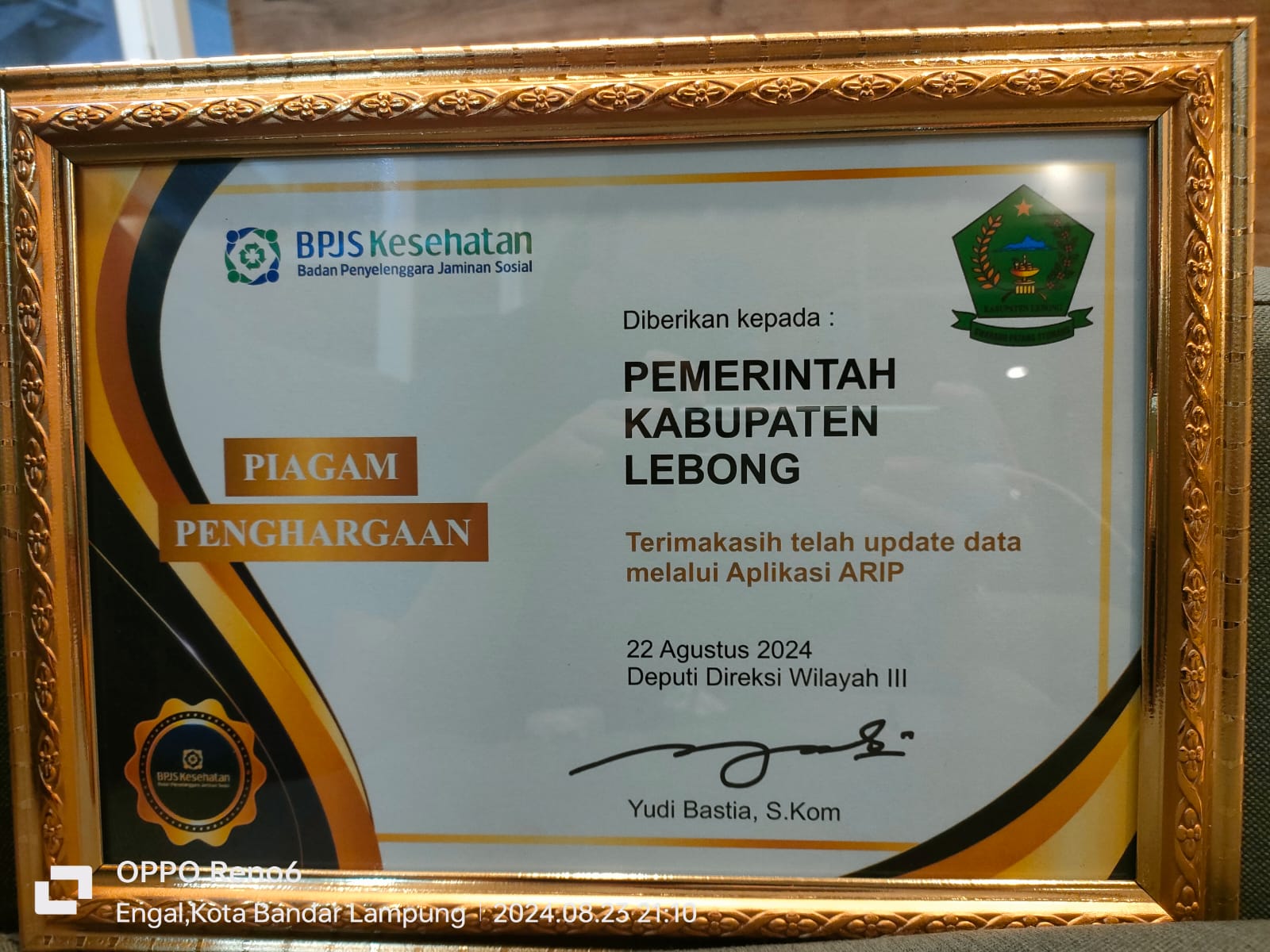 Pelaksana Tugas Kepala BKD Lebong Riswan Efendi. S, MM., melalui Kasubdit Perbendaharaan Sargani S.STP., ME., mengatakan bahwa penghargaan tersebut diberikan sebagai bentuk apresiasi atas komitmen Pemkab Lebong dalam mendukung program jaminan kesehatan di kabupaten Lebong.