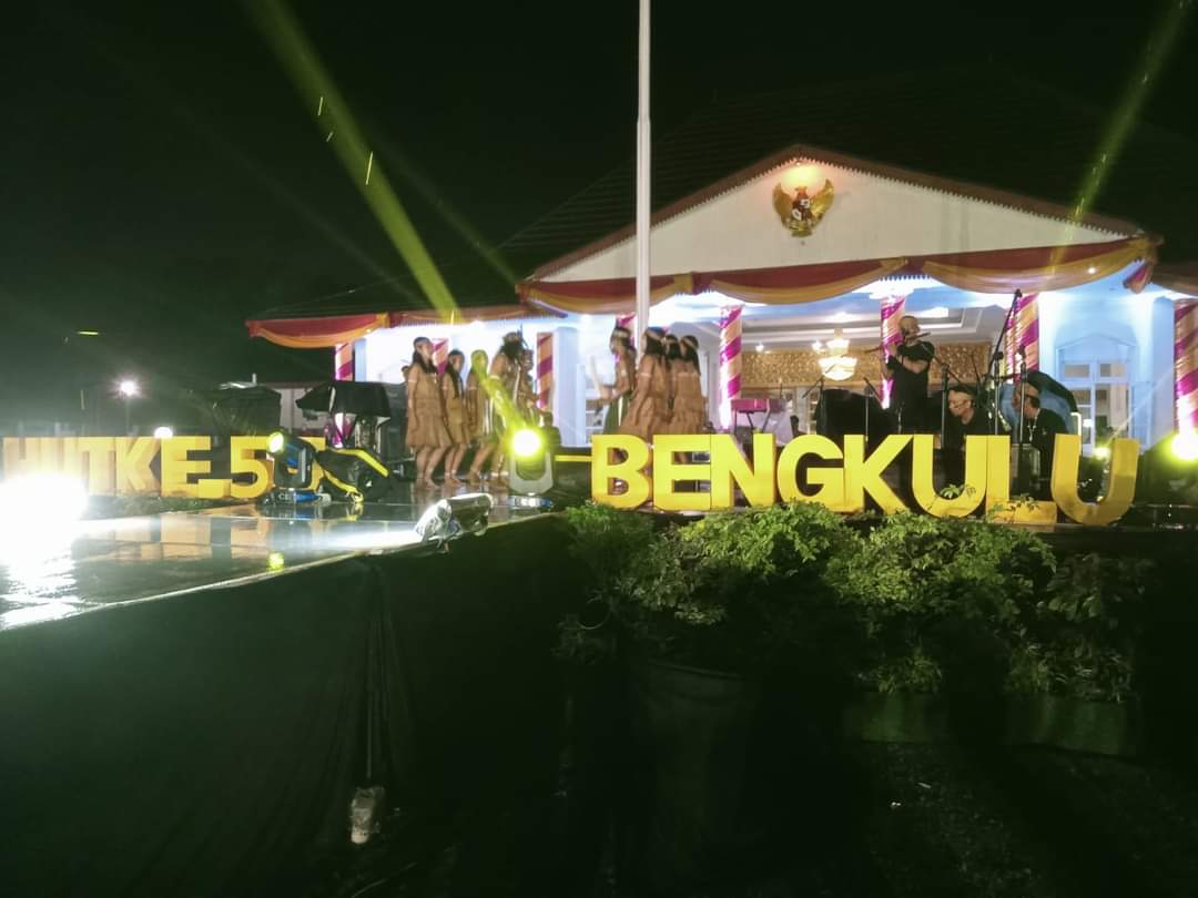 Berbagai acara hiburan digelar, Gubernur Bengkulu, Rohidin Mersyah memotong nasi kunyit sebagai tanda Dirgahayu Propinsi Bengkulu ke-55 tahun 2023.