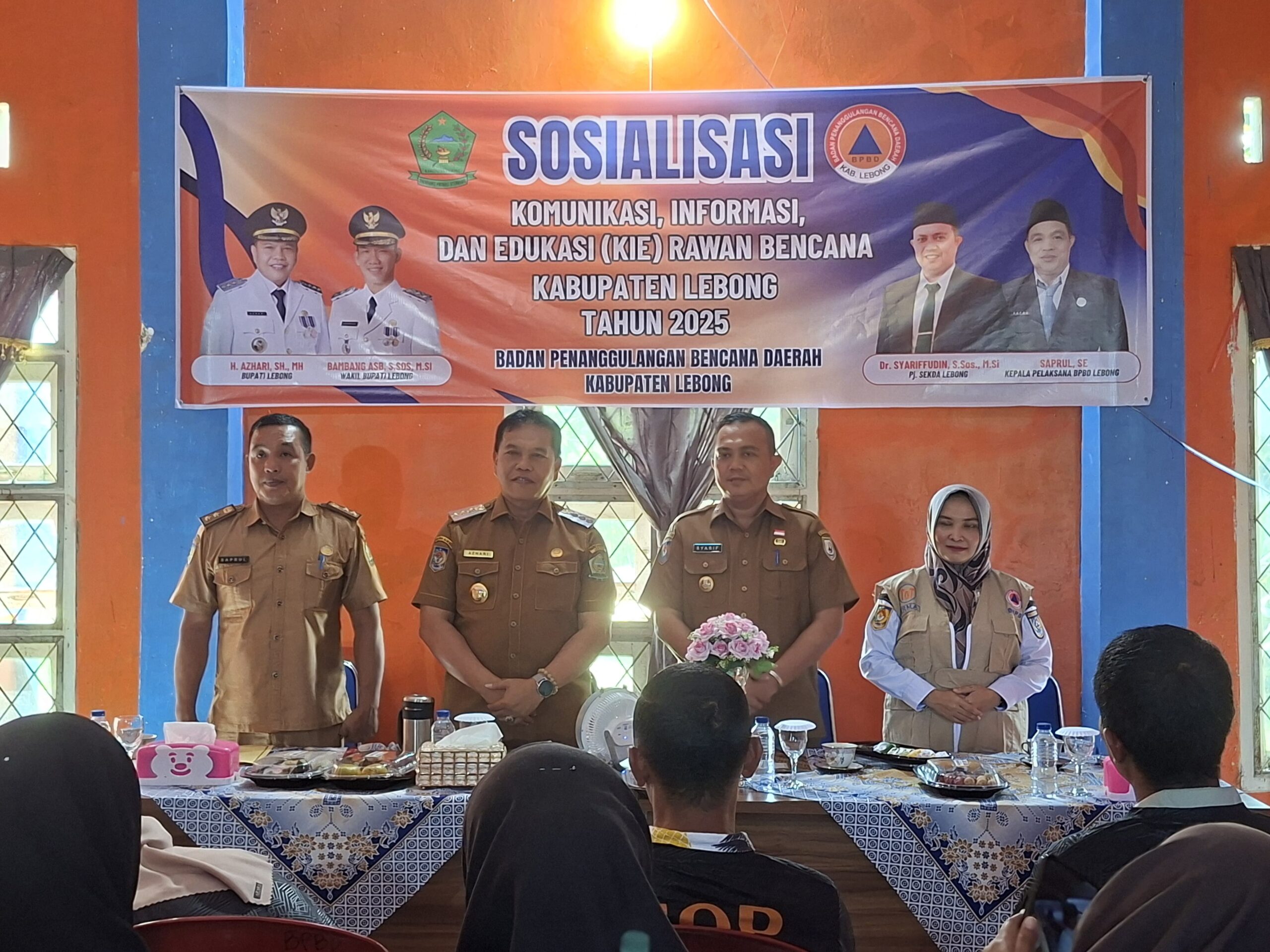 Bupati kabupaten Lebong H,Azhari,SH.,MH., melalui kepala pelaksana (Kalaks) BPBD kabupaten Lebong Syaprul,SE., kepada awak media menyebutkan bahwa Komunikasi, Informasi, dan Edukasi (KIE) Rawan Bencana adalah program penting dari Badan Penanggulangan Bencana Daerah (BPBD) untuk menyosialisasikan kesiapsiagaan bencana ke masyarakat, sekolah, dan pemerintah desa, dengan tujuan meningkatkan pemahaman, kesadaran, dan partisipasi publik dalam mitigasi serta pencegahan bencana, melalui simulasi, pelatihan, sosialisasi materi seperti penggunaan dana desa untuk bencana, hingga pembentukan desa tangguh bencana agar masyarakat siap bertindak cepat dan tepat saat terjadi bencana alam seperti gempa, tanah Longsor, dan banjir.