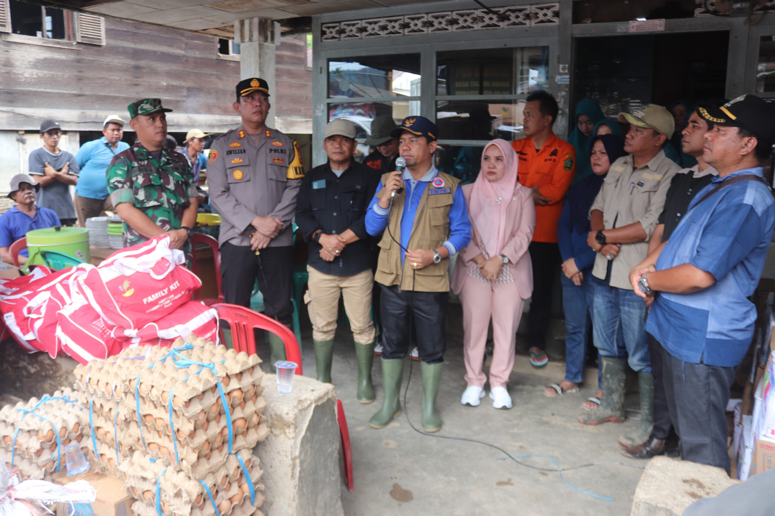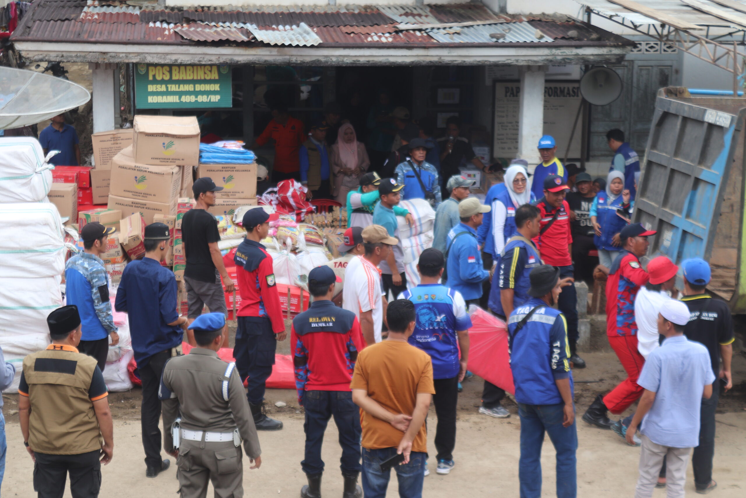 Di lokasi, Bupati tidak datang dengan tangan kosong. Namun, menyerahkan bantuan logistik berupa bahan pokok hingga peralatan rumah lainnya di Posko yang terletak di Desa Talang Donok.