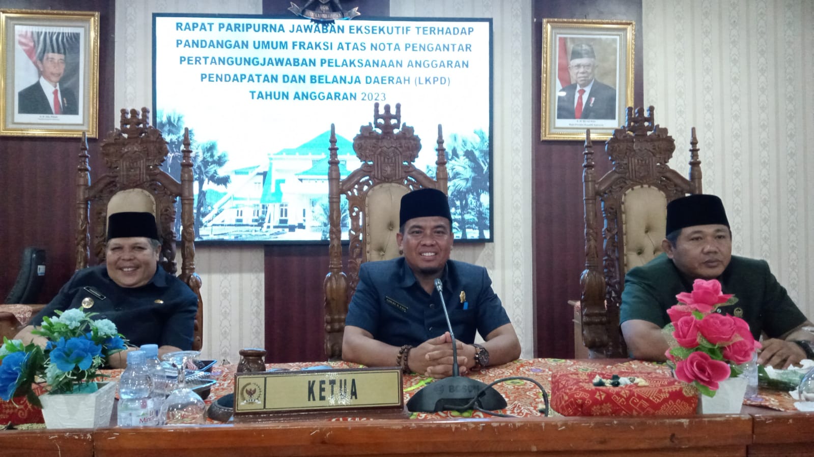 “Pada kesempatan ini kita akan mendengarkan pandangan umum fraksi-fraksi DPRD terhadap nota pengantar pertanggungjawaban APBD Kabupaten Lebong tahun 2023,” ucap Carles Ronsen.