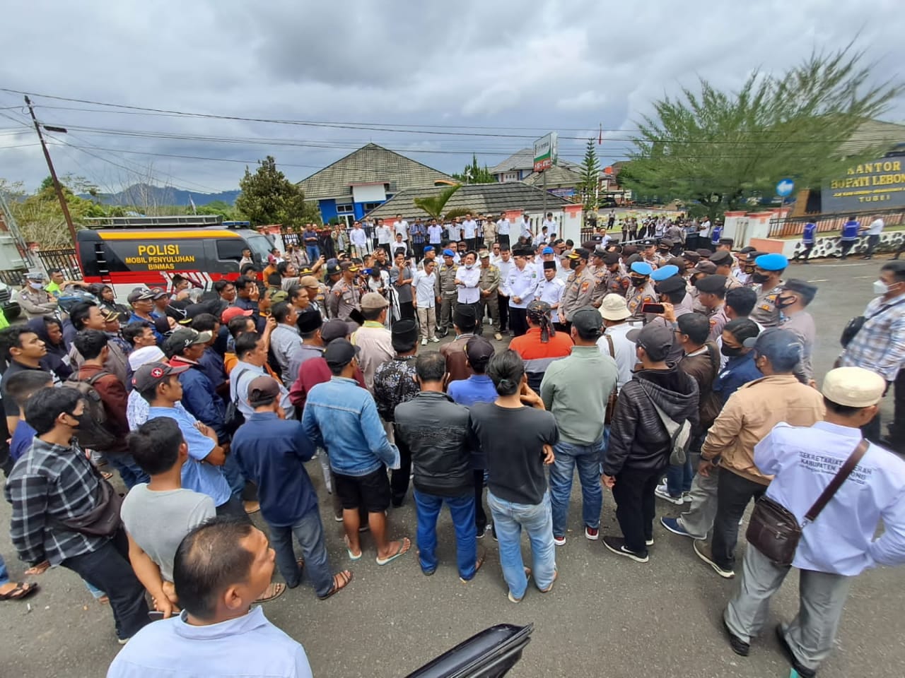 Selang beberapa waktu,masa aksi ditemui lansung oleh bupati Lebong kopli Ansori dengan didampingi oleh sejumlah pejabat teras pemkab lebong, diantaranya Sekdakab Lebong Musatarani Abidin,Asisten 1 Firdaus dan sejumlah stap ahli bupati. yang dilanjutkan penyampaian asfirasi oleh perwakilan masa aksi diantaranya meminta Bupati dan ketua DPRD menanda tangani fakta Integritas untuk menyikapi dan menuntaskan permasalahan tapal batas lebong-Bengkulu utara terkait permendagri nomor 20 tahun 2015, dan selanjut dengan sikap keseriusan tinggi kopli ansori lansung meminta sejumlah perwakilan masa aksi untuk lansung ikut serta menggelar rapat pembahasan terkait tehnis tuntutan yang disampaikan.