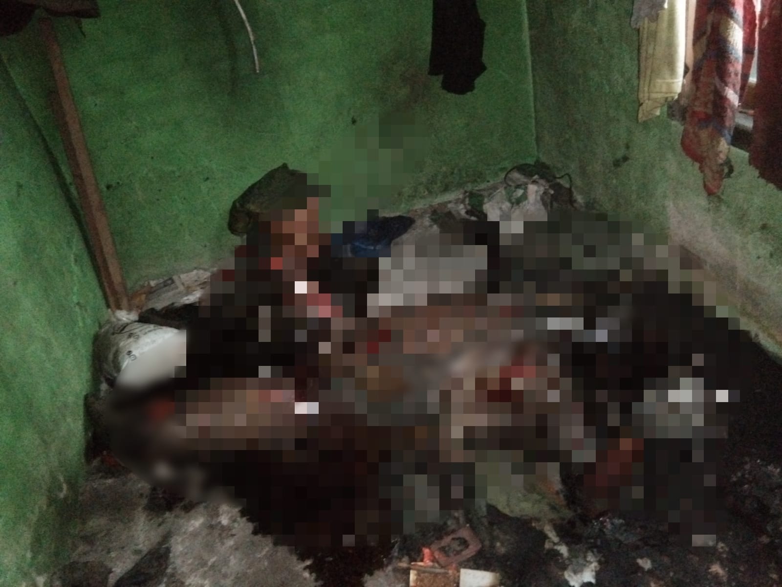 Saat ditemukan jenazah korban dalam kondisi terbakar, dan badan sudah menghitam berbau menyengat di dalam kamar.