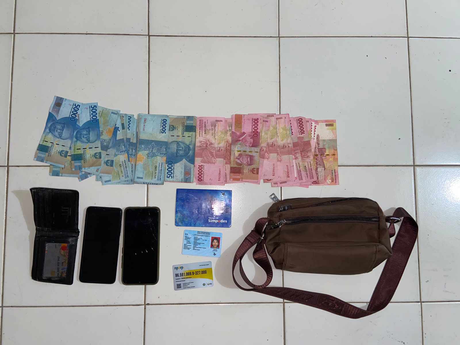 Dari tangan tersangka, didapati barang bukti berupa uang tunai sebesar Rp 3,6 juta, 1 unit sepeda motor jenis Honda Merk Suprafit warna biru dengan Nomor Polisi (Nopol) BD 2412 CF.