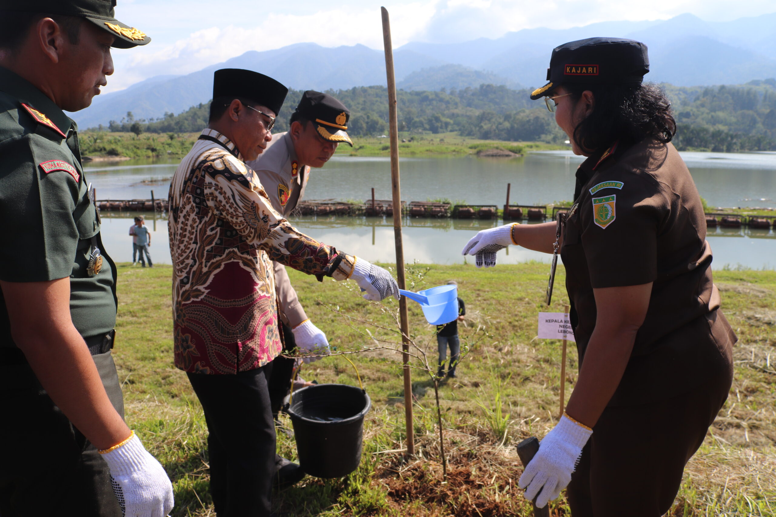Lebong. PortalBermano.com – Dalam rangka memperingati Hari Bahayangkara ke 78 dan Hari Lingkungan Hidup (HLH) Se-dunia, Bupati Lebong, Kopli Ansori  dan Kapolres Lebong AKBP Awilzan Beserta Jajaran serta Dandim 0409 R/L Letkol ARH M.Erfan Yuli Safutro bersama seluruh stakeholder dalam hal ini Forkopimda Lebong, Penjabat Sekretaris Daerah (Sekda) Lebong, melakukan penanaman 1.000 pohon secara serentak di Intake PLTA Tes di Kelurahan Tes Kecamatan Lebong Selatan, Kamis (27/6) sekitar pukul 09.00 WIB.
