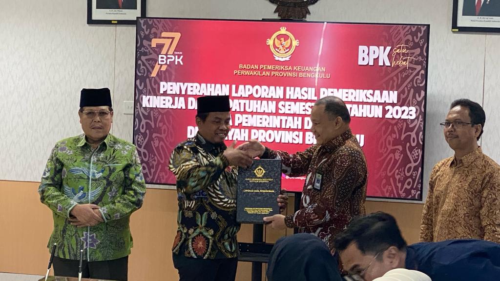 Lebong. PortalBermano.com – Pemerintah Kabupaten (Pemkab) Lebong menerima penyerahan Laporan Hasil Pemeriksaan (LHP) Kinerja atas Penyelenggaraan Pelayanan Publik Dalam Rangka Mendukung Program Gerakan Indonesia Melayani Melalui Mal Pelayanan Publik (MPP) Tahun 2022 sampai 2023 semester I pada Pemkab Lebong di Kantor BPK Perwakilan Provinsi Bengkulu, Selasa (16/1) sekitar pukul 09.00 WIB.