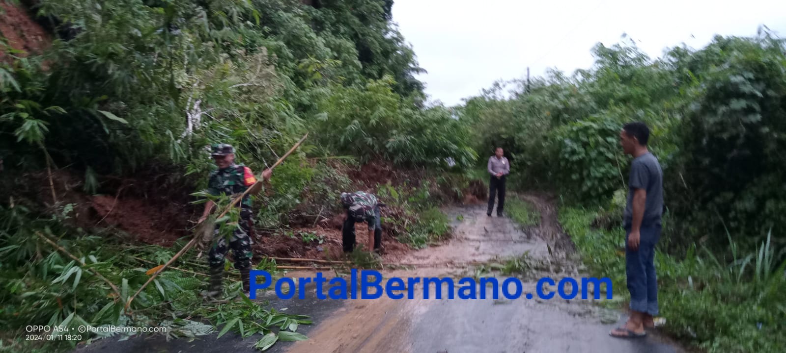 Ia menjelaskan material tanah yang menutupi seluruh badan jalan Raya, bersama dengan Personil Polsek Lebong selatan bergotong royong membersihkan sisi bahu jalan dengan menggunakan alat parang dan cangkul. Hal itu, agar pengguna jalan bisa lewat dengan sistem buka tutup satu jalur.