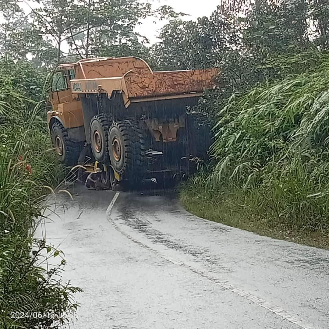 Tronton pengangkut alat berat jenis adt ini melaju dari Pool Pilar yang berlokasi di Pagar Dewa Kota Bengkulu ingin menuju PT Jambi Resources (JR)