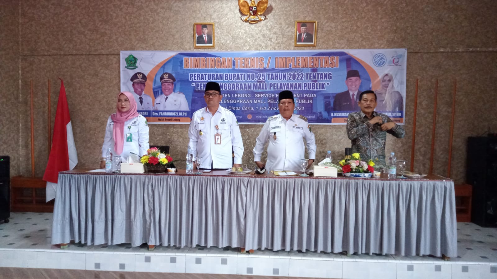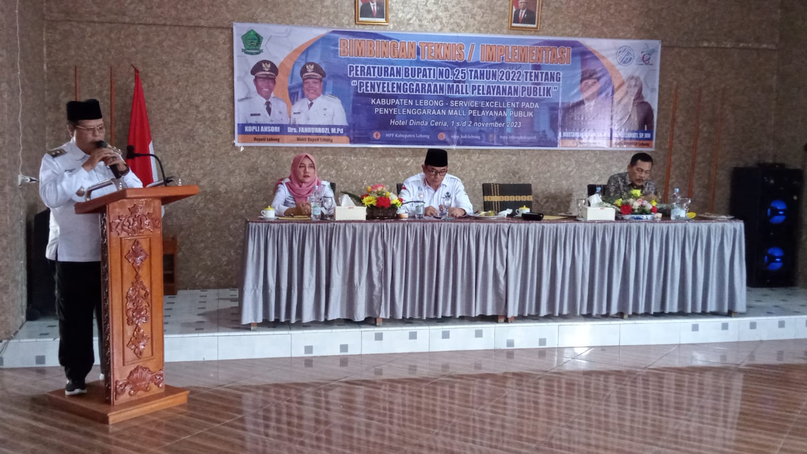 Lebong. PortalBermano.com – Pemerintah Kabupaten (Pemkab) Lebong melalui Dinas Penanaman Modal dan Pelayanan Terpadu Satu Pintu (DPM-PTSP) Kabupaten Lebong, menggelar acara bimbingan teknis service excellent pada Penyelenggaraan Mal Pelayanan Publik (MPP) Perigo Agung di salah satu hotel di Kabupaten Lebong, Rabu (1/11) siang.