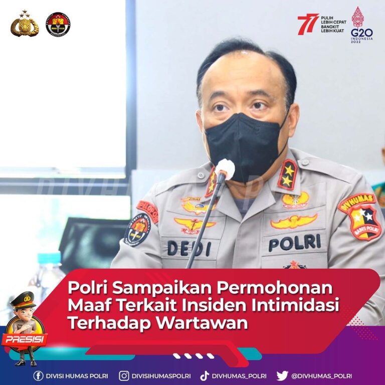 Korps Bhayangkara melalui Kadiv Humas Polri Irjen. Pol. Prof. Dr. Dedi Prasetyo, M.Hum., M.Si., M.M., mengungkapkan permohonan maaf atas insiden dugaan intimidasi yang dilakukan oleh oknum polisi terhadap wartawan dan berjanji akan menindak tegas oknum polisi tersebut. “Saya selaku Kadiv Humas tentunya mengucapkan permohonan maaf yang sebesar-besarnya atas peristiwa yang terjadi kemarin malam, kebetulan menimpa dua temen media yaitu dari detik maupun dari CNN,” ucap Kadiv Humas Polri pada Jumat (15/7).