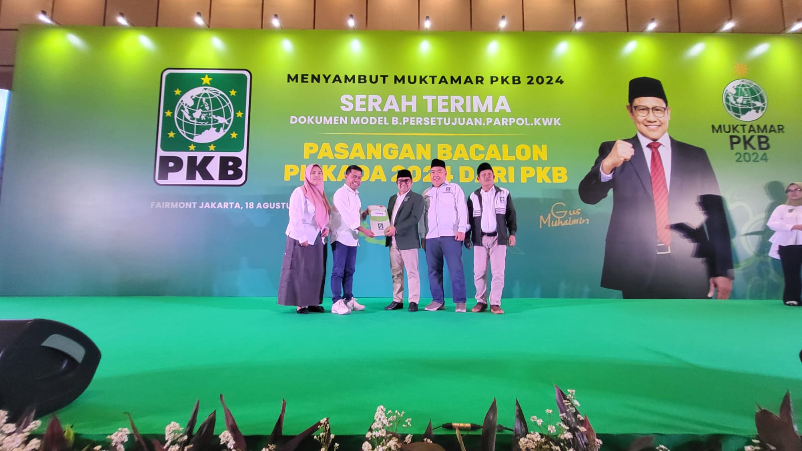 Setelah menerima dokumen B.1 KWK, Kopli Ansori bersama Roiyana sempat bersalaman dengan Cak Imin sebelum akhirnya langsung turun dari panggung dan meninggalkan ruangan.