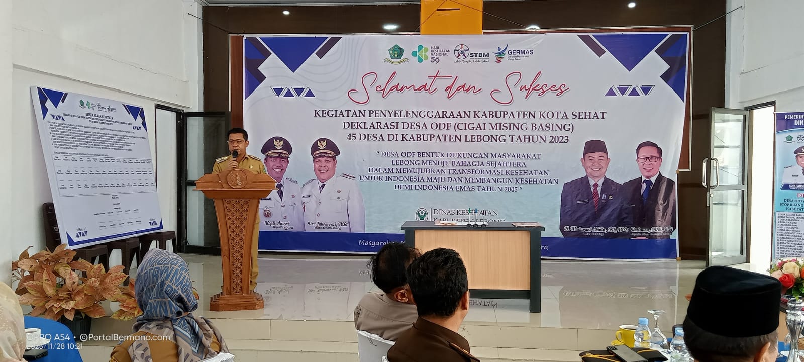 Lebong. PortalBermano.com – Bupati Lebong, Kopli Ansori menghadiri acara Deklarasi Desa sebagai Desa ODF (Open Defecation Free) atau Desa Stop Buang Air Besar Sembarangan, Selasa (28/11) di Aula kantor Dinas Kesehatan (Dinkes) Kabupaten Lebong.