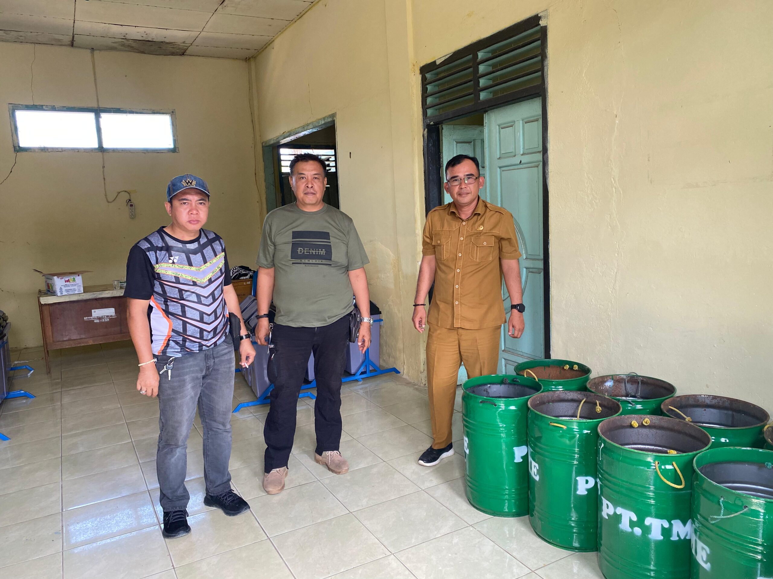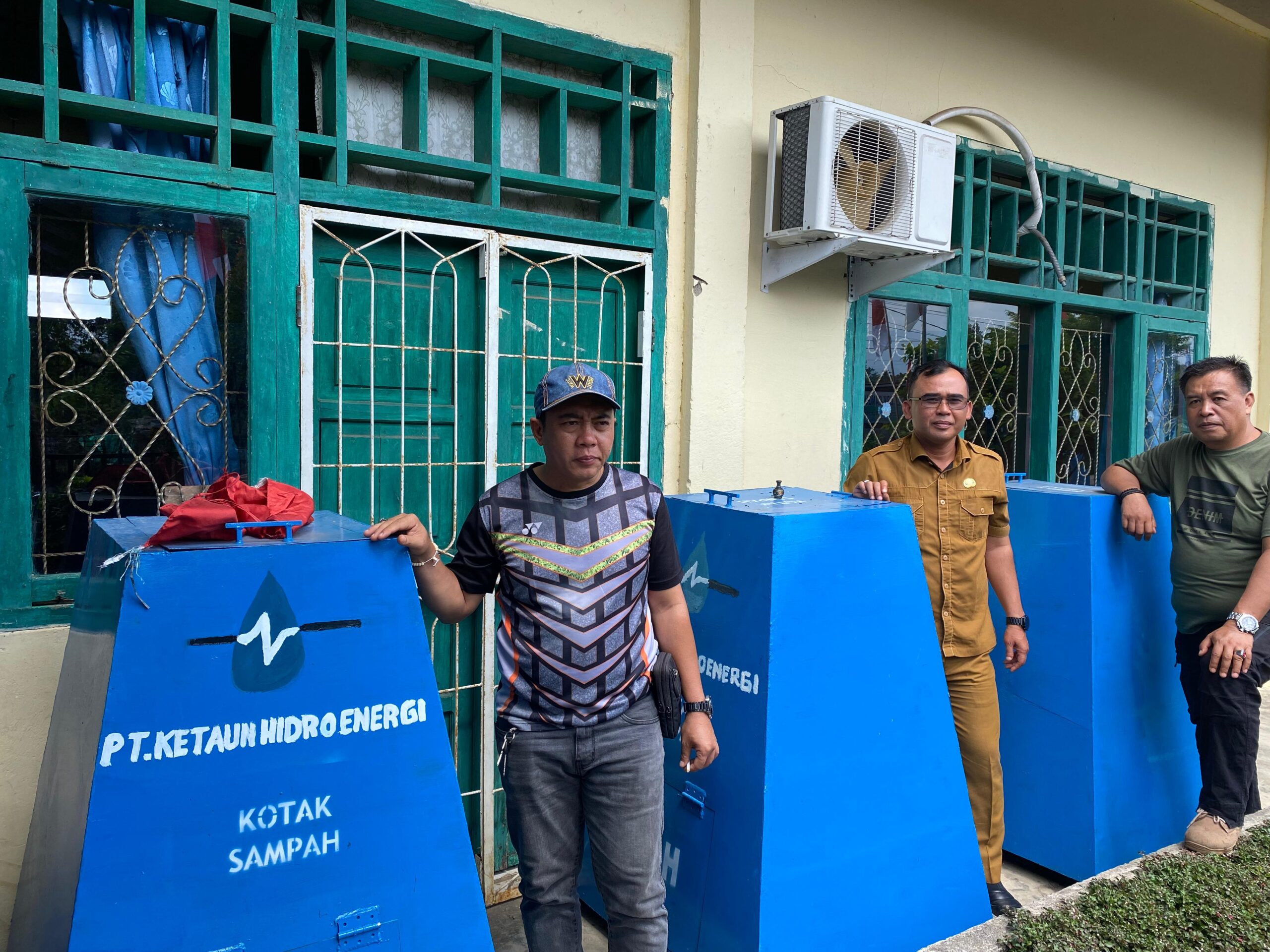 Kadis Lingkungan Hidup Kabupaten Lebong, Joni Prawinata didampingi Sekretaris Tarmizi dan Kabid Pengelolaan Sampah, Limbah B3 dan Peningkatan Kapasitas, A. Repi menyampaikan, 27 tempat sampah berwarna biru, silver dan hijau bantuan perusahaan di Lebong untuk mendukung program Masdilan.