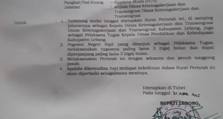 Bupati Lebong Lengserkan Plt Kadis Dikbud