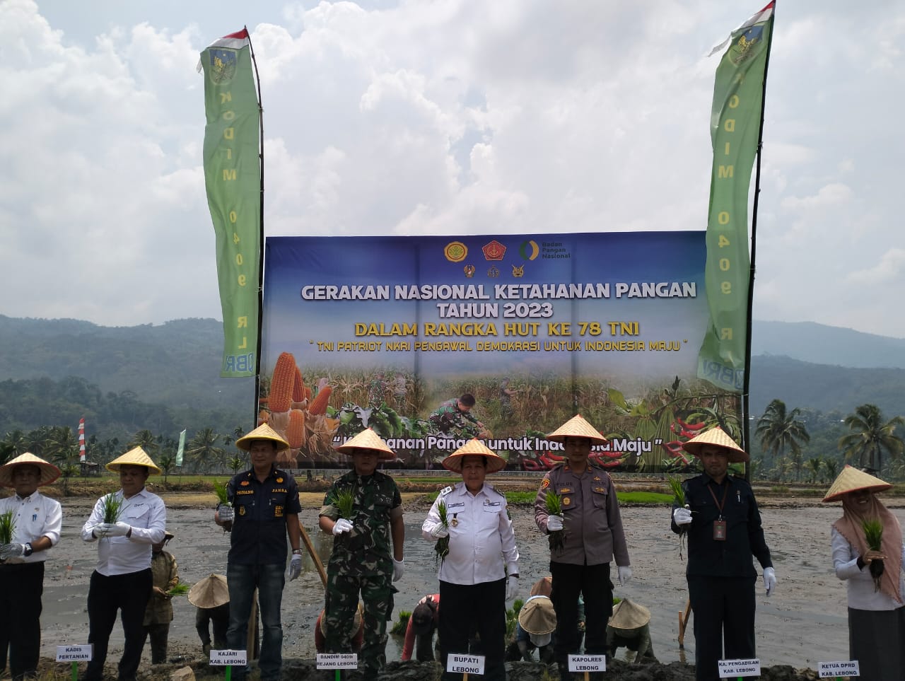 Lebong. PortalBermano.com – Dalam rangka Hari Ulang Tahun (HUT) ke-78, Kodim 0409 Rejang Lebong melaksanakan gerakan nasional ketahanan pangan tahun anggaran (TA) 2023 dengan cara turun tanam yang dipusatkan di Semelako II Kecamatan Lebong Tengah, Kabupaten Lebong, pada Rabu (1/10) pukul 10.00 WIB.
